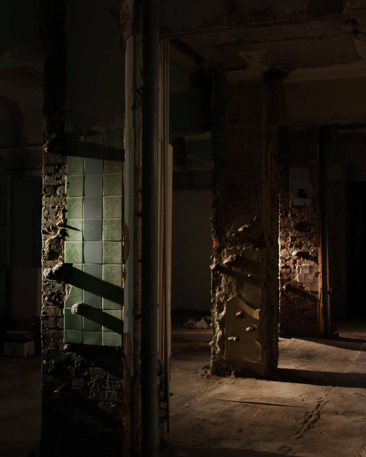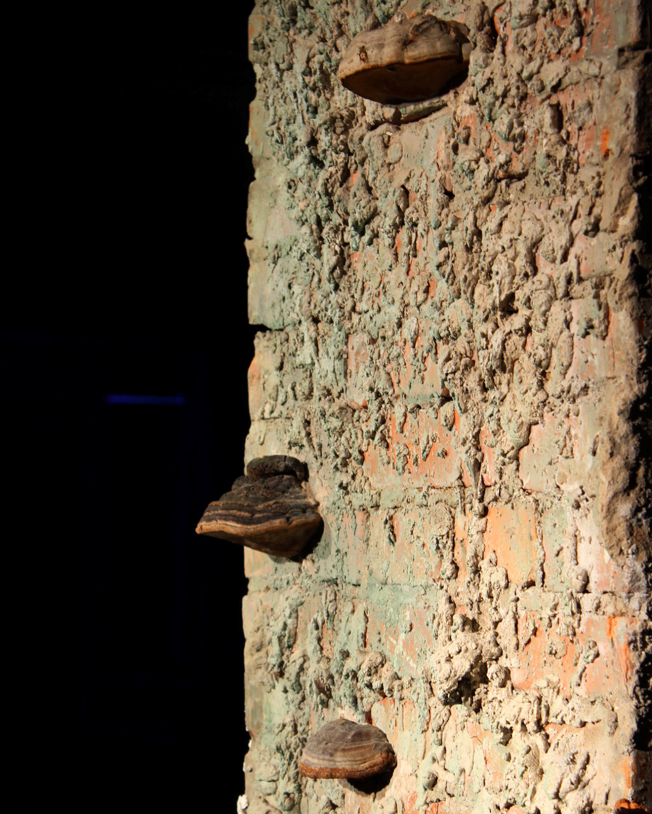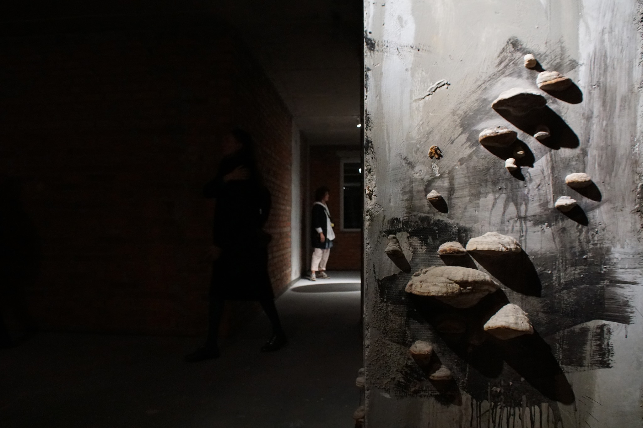 Text by: Daryna Skrynnyk-Myska The project Return was first realized within the framework of the Festival of Film and Urbanism “86” in Slavutych. In its initial version, the idea of the project referred to the history of this city, built in the middle of a forest that is constantly trying to reclaim its territory. The project also alluded to the proximity of Chornobyl, where, despite the technogenic catastrophe, nature has prevailed over urban landscapes. However, in the context of Kharkiv, the opposition between “human and nature” acquires a different intonation. Parasitic fungi, which usually cling to trees, appear in the most unexpected places — on concrete electricity poles or notice boards, on buildings, or even inside them — within the once luxurious interiors of part of the unique Constructivist complex, the Kharkiv Hotel. The state of neglect and ruin that has prevailed here in recent years, against the backdrop of the broader problems not only of the city but of the country as a whole, has ceased to be traumatic or to cause discomfort. It seems that the pitiful condition of our environment (our garden?) on a national scale is perceived as a natural and inevitable state of affairs. Ruin has become so familiar that it is no longer noticed. Instead, parasitic fungi, appearing where according to the laws of nature they should not exist, mark this emptiness and decay in order to refocus attention on it — to remind us that such a state of things is not the norm, and that it has long been time to put things in order.