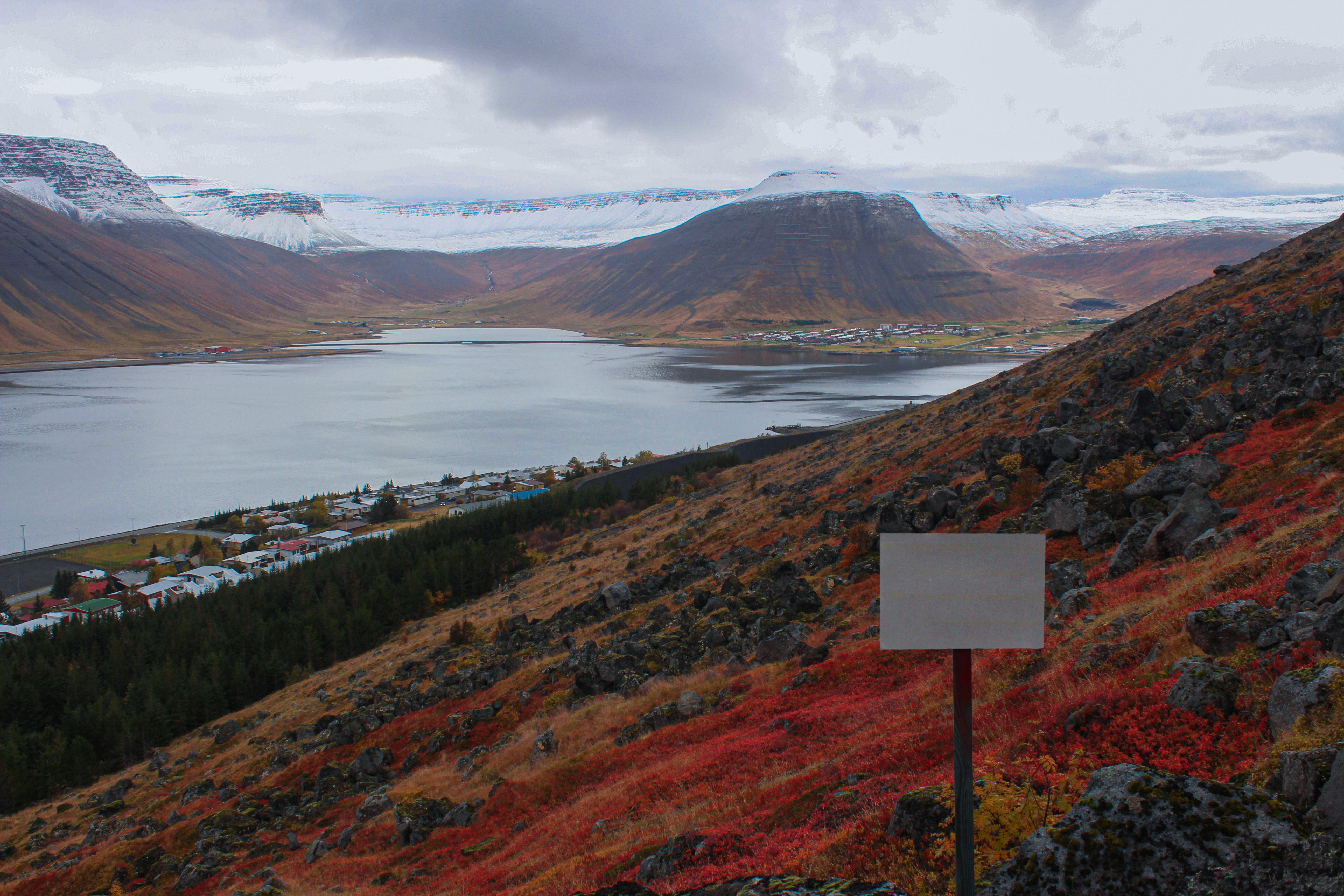 This work was created during our stay in Iceland at the ArtsIceland residency in 2023, in the city of Isafjordur. This is the Westfjords, October, a very, very beautiful place and time. We often went for walks and took the sign with us. A sign of what? Warning - about what? "Caution", "danger nearby", "danger too far away", "danger at home"? Always looming in the field of vision. White noise that you can't get rid of. A specific national disease. An unnamed feeling that we carry everywhere with us. Even in these, such, such beautiful places. Especially in such beautiful ones.